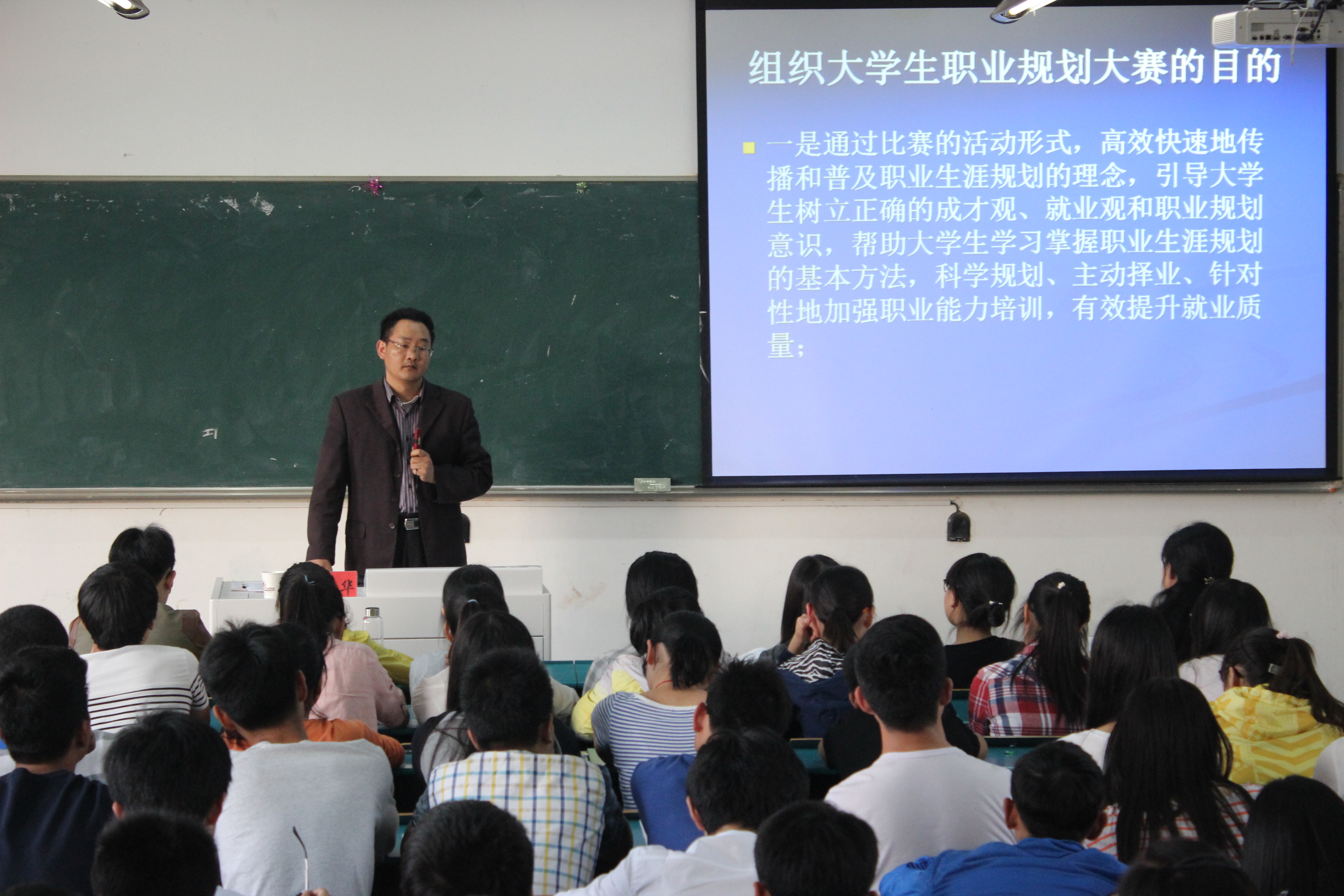 本次讲座以老员工职业生涯规划大赛为切入点。首先,李军华老师向同学们介绍了什么是职业生涯规划以及老员工职业生涯规划大赛的各个环节。接着他又详尽生动地介绍了设计书内容:自我分析,职业分析,职业目标路径设计、规划与实施计划以及评估和备选方案五个部分,并且在参赛作品设计上给予了同学们中肯的建议,指导同学们如何写出完整、个性、清晰、可行的规划书。最后李军华老师还给大家分析了近几年职业规划大赛作品的亮点和不足,帮助大家总结经验,鼓励同学们积极参加比赛,充分发挥自身才能展现自我。