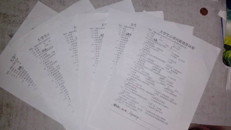 为获得同学们目前心理状态的第一手资料,5月中旬,2014级团总支面向2014级员工发放了150份心理健康调研问卷,并对各个指标进行了结果分析。结果显示:大部分同学认为自身心理状态较为良好,并且对心理咨询、心理治疗等持积极态度;而认真对待自我心理健康,并善于采取正确方法排解压力的同学也拥有着相对较高的心理健康指数;经历了近一年的老员工活后,同学们基本上已经渐渐懂得了如何去调节自身心理问题,并以积极的态度处理生活中遇到的各类困难。