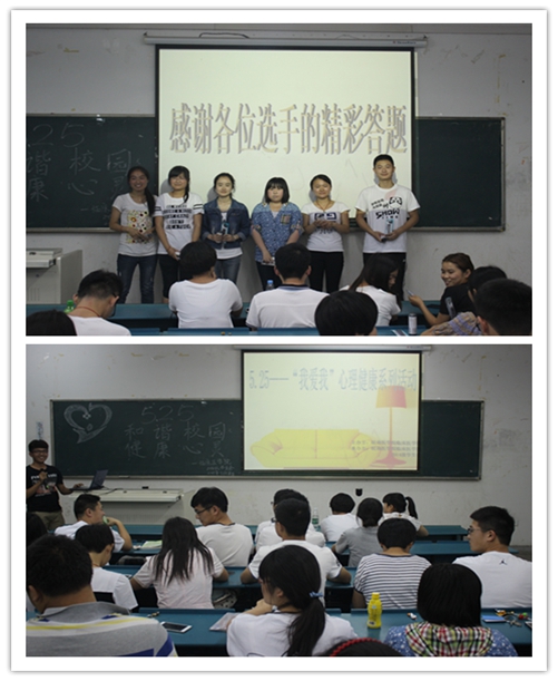 为提高同学们对心理健康问题的重视程度,促进广大同学科学文化素质和身心健康素质的协调发展,2013级团总支号召和组织了23个团支部于5月中上旬开展了“心理健康”教育系列主题班会。班会通过PPT解说、播放视频、素质拓展等多种形式展开,寓教于乐的轻松氛围与现场事例的经典分析相穿插,如同一曲曲精心谱写的交响乐,不一样的旋律带给员工的却是同样的受益匪浅。
