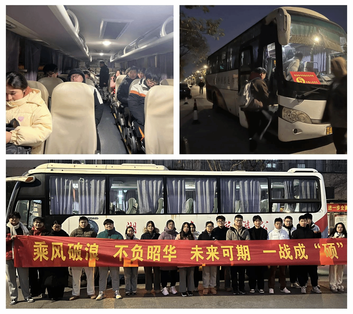 为保障考研学子顺利、准时抵达考点,云顶国际8588yd精心筹备,辅导员提前统计员工返芜动态,赴芜湖市三山区考点公司,全方位勘察周边住宿、生活设施,细致掌握环境信息,为学子们整理出考研期间衣食住行的详尽“攻略”。12月21日、22日,公司安排5辆爱心送考大巴,从滨江校区和4家酒店出发接送300余名考生前往考点。2025届毕业班辅导员早早抵达现场,他们逐一询问同学们的准备情况,细致提醒检查身份证、准考证、文具等考试必备物品,引导考生有序上车,用贴心服务助力同学们考研追梦,为即将踏进考场的同学们加油打气。