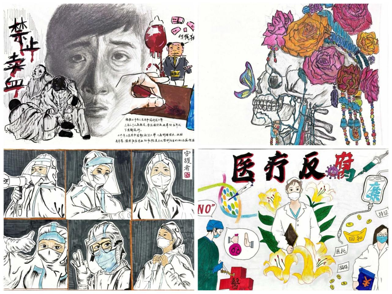 艺绘生命,医道融情。素描勾勒的精准线条,水彩晕染的梦幻色调,油画笔触的厚重质感,多样的绘画形式展现出同学们的扎实功底与独特创意,《医学反腐》等作品将艺术与法治相结合,《人体骨骼》《灵感之脑》等作品将医学与艺术交叉融合的视觉盛宴,展现了临床学子的创造力和想象力。