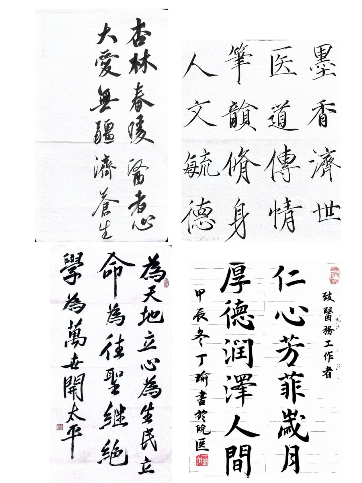 墨香医道,笔韵人文。书法之美在于气韵生动,承载着中华优秀传统文化的深厚内涵。同学们的硬笔书法作品铁画银钩、遒劲有力,软笔书法作品汪洋恣意、清秀雅致,每一笔每一划都是情感的流淌,彰显了同学们对书法文化的热爱。