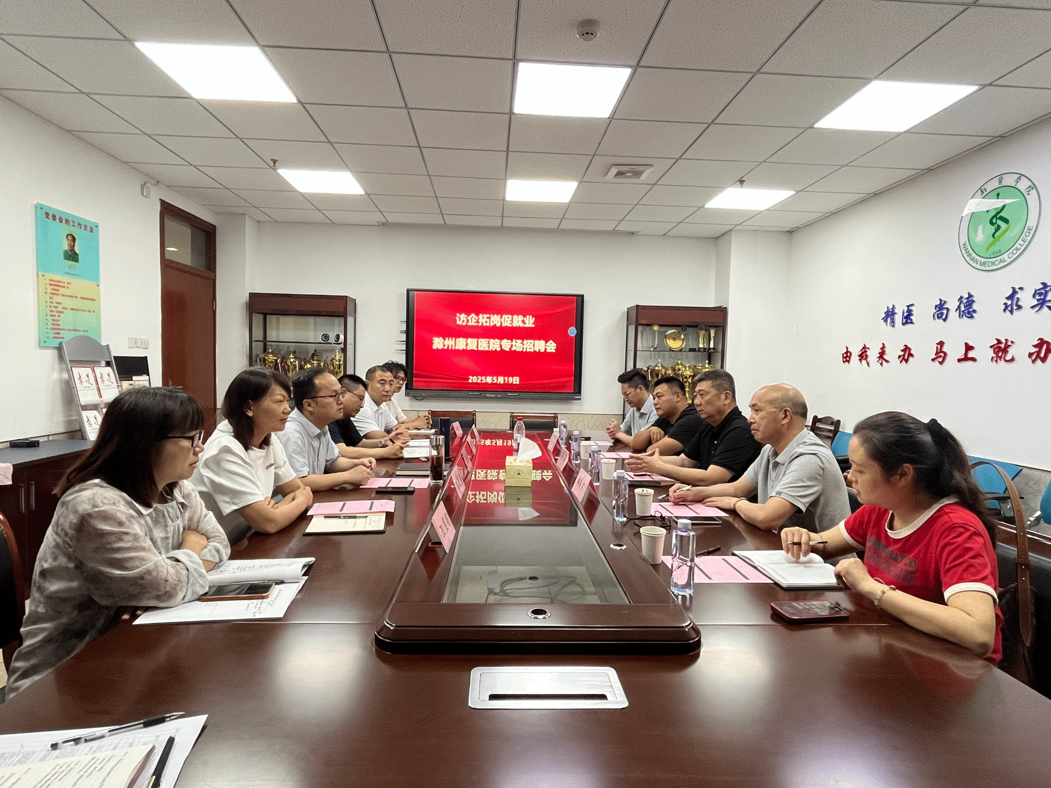 为拓宽就业渠道,促进毕业生就业,5月19日,云顶国际8588yd邀请滁州康复医院来院开展专场招聘会,公司党委书记方基勇、副经理陈祥攀、党委副书记陶香香、康复治疗学专业毕业班辅导员和公司秘书参会。