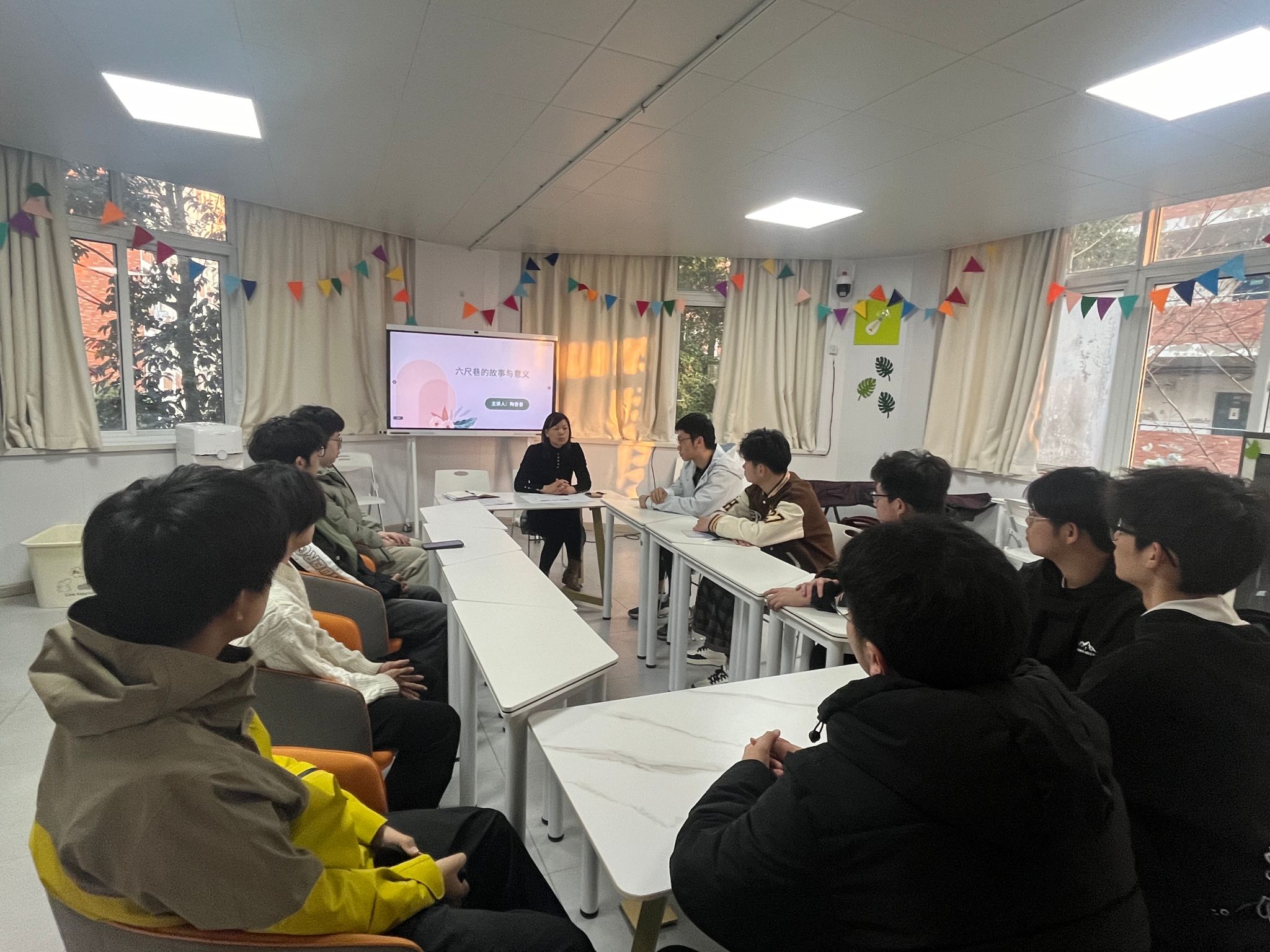 陶香香细致解答了同学们提出的问题,并从六尺巷故事的背景、内涵和价值观念、现代启迪和应用三个方面阐述了六尺巷的故事和意义,带领同学们重温了习近平总书记考察安徽走访六尺巷时的重要讲话。她强调,六尺巷不仅是一处地名、一个典故,还是汲古言今的思政课堂,体现了先人化解矛盾的历史智慧。同学们要从六尺巷中感受中国“和文化”,带头弘扬中华优秀传统文化,让礼让、以和为贵的传统美德在“一站式”员工社区的建设和管理中发挥作用,营造和谐生活学习环境。