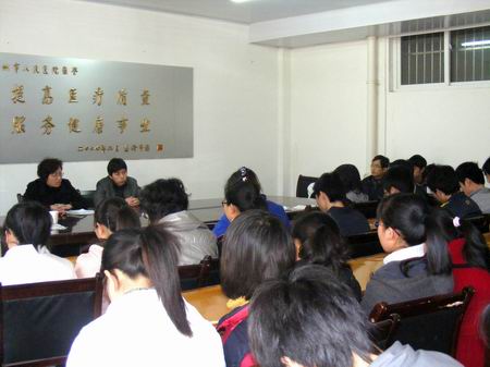 会上,实习队长向大家介绍了自实习以来同学们的学习、工作、生活等基本情况,医院科教科两位老师充分肯定了大家在实习期间的各方面表现,并对2月份池州市血库告急,医学一系06级实习生们挺身而出,积极进行无偿鲜血的奉献爱心精神给予了高度赞扬,并希望大家继续保持发扬优良的实习作风,为医院、为皖医争光。