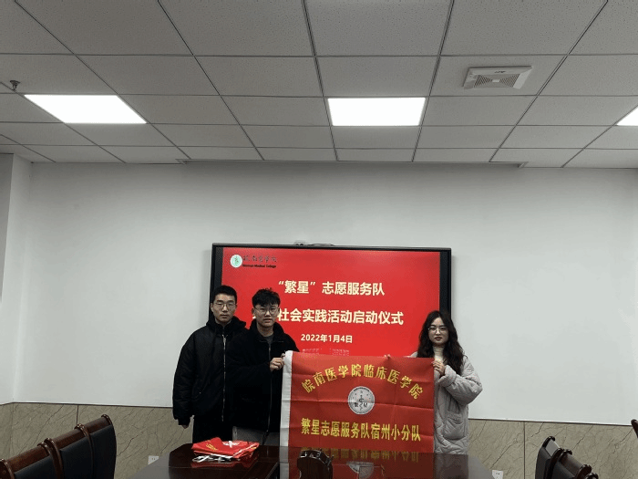 1月4日,2021级举办了“繁星”志愿服务队寒假社会实践启动仪式。2021级团总支书记李锐洁老师认真布置了此次寒假社会实践活动,并对 27个分队授旗,嘱咐同学们用实际行动彰显皖医学子的青春正能量。