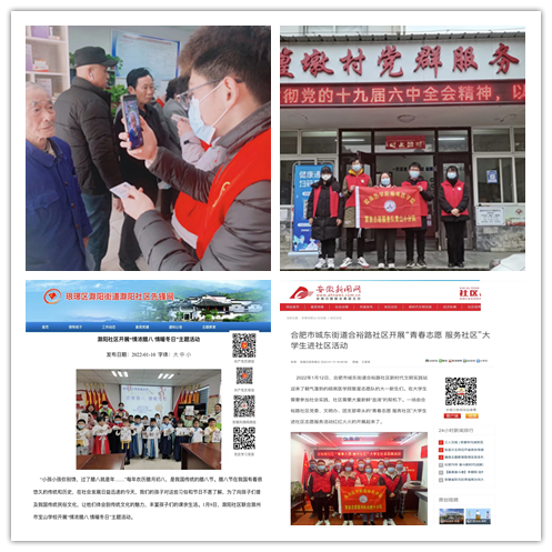 合肥、黄山、滁州、广德等地的“繁星”志愿服务队开展核酸检测、卫生清洁、老人生存认证、上访调查健康码、返乡人员血吸虫免费排查等服务居民的志愿服务活动,为共建美好家乡、美好社区贡献了皖医学子朝气蓬勃的青春力量。