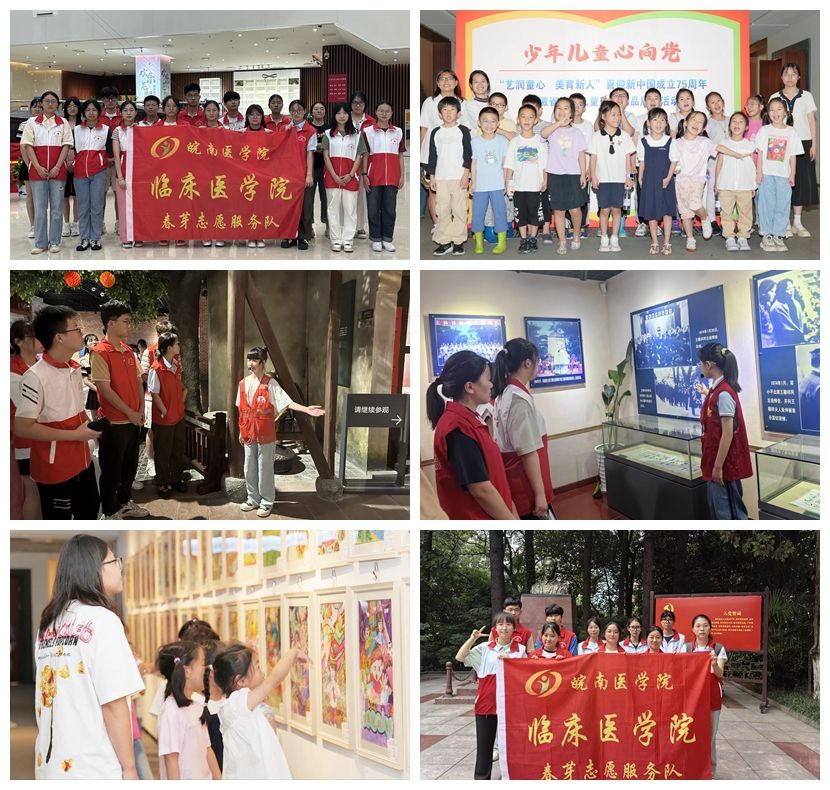 7月10日-15日,云顶国际8588yd“春芽”“繁星”志愿服务队前往芜湖市博物馆、王稼祥纪念馆、安徽美术馆等地进行参观学习。通过实地调研,“春芽”志愿服务队在芜湖市博物馆中领略了芜湖从古至今砥砺奋进的历史画卷,在王稼祥纪念馆里参观详实的文献史料、革命遗物等,感受到了革命先烈留下的宝贵精神财富;“繁星”志愿服务队在安徽美术馆“艺润童心 美育新人”喜迎新中国成立75周年安徽省少年儿童美术作品展示活动中担任引导员,带领小朋友们参观美术作品展览,感受艺术的魅力。